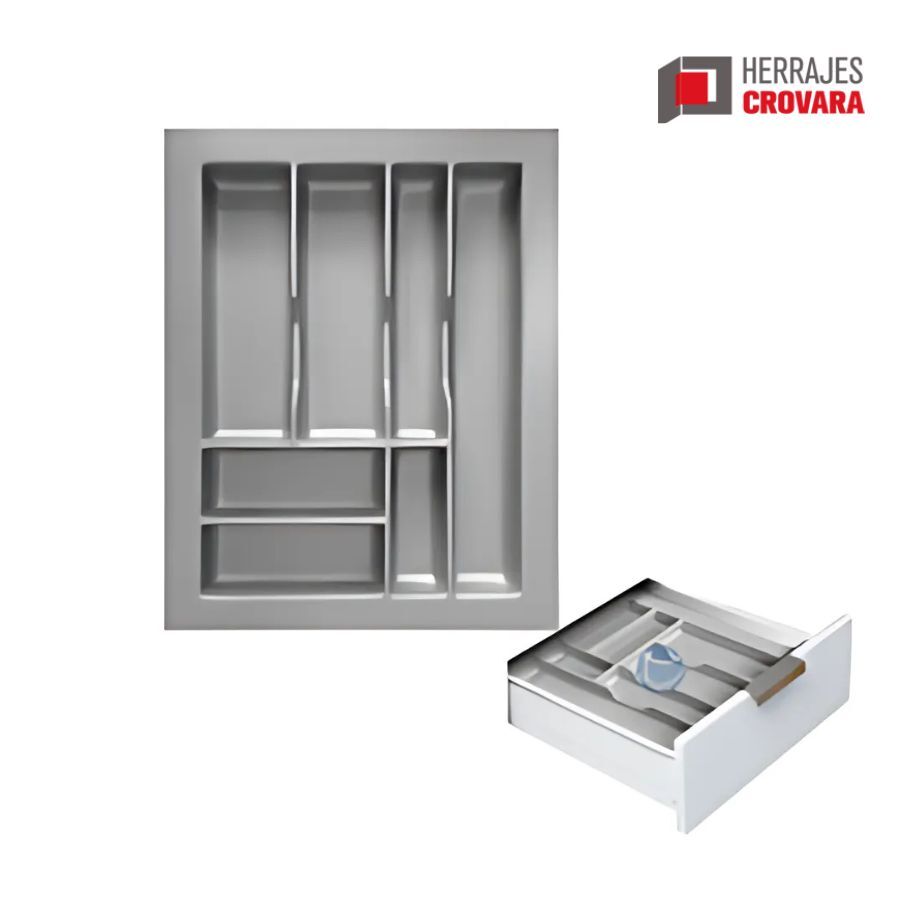 El cubiertero de plástico de Herrajes Crovar ofrece una solución funcional y organizada para tus utensilios de cocina. Disponible en múltiples módulos prestablecidos, este producto se adapta fácilmente a diversas dimensiones, como 430 mm x 470 mm,